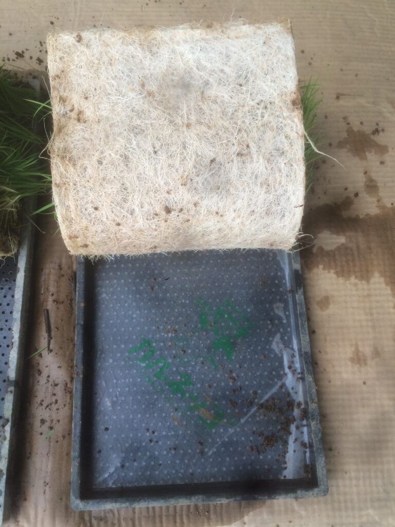素材は木材繊維の為、通気性、保温性に優れ水は通すが根は育苗箱にはからみません。